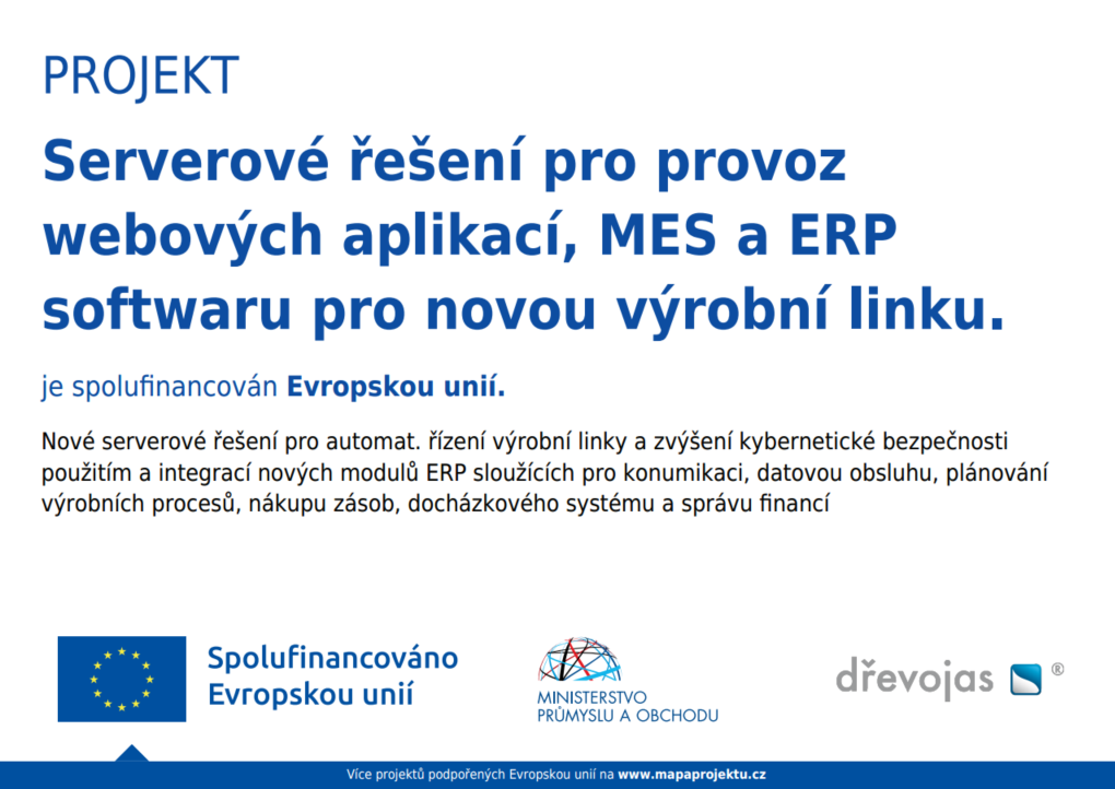 Popis operace: Projekt je dalším významným krokem směrem k implementaci principů průmyslu 4.0 do naší výroby. Na danou operaci je poskytována finanční podpora od Evropské unie.