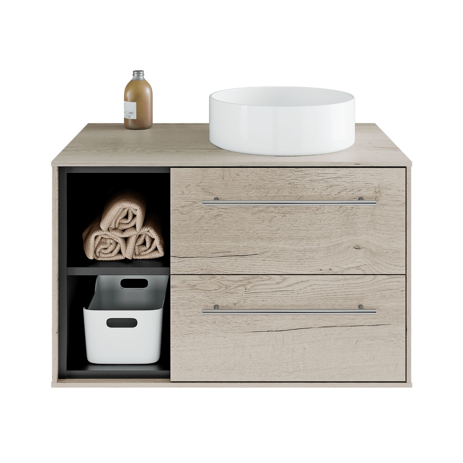 Díky kombinaci zásuvek a otevřených nik umyvadlových skříněk vytvoříte praktické a elegantní úložné řešení, které vám usnadní život v koupelně. Ať už potřebujete uschovat drobnosti nebo ručníky či osušky, kolekce KVADRO vám poskytne prostor na vše.