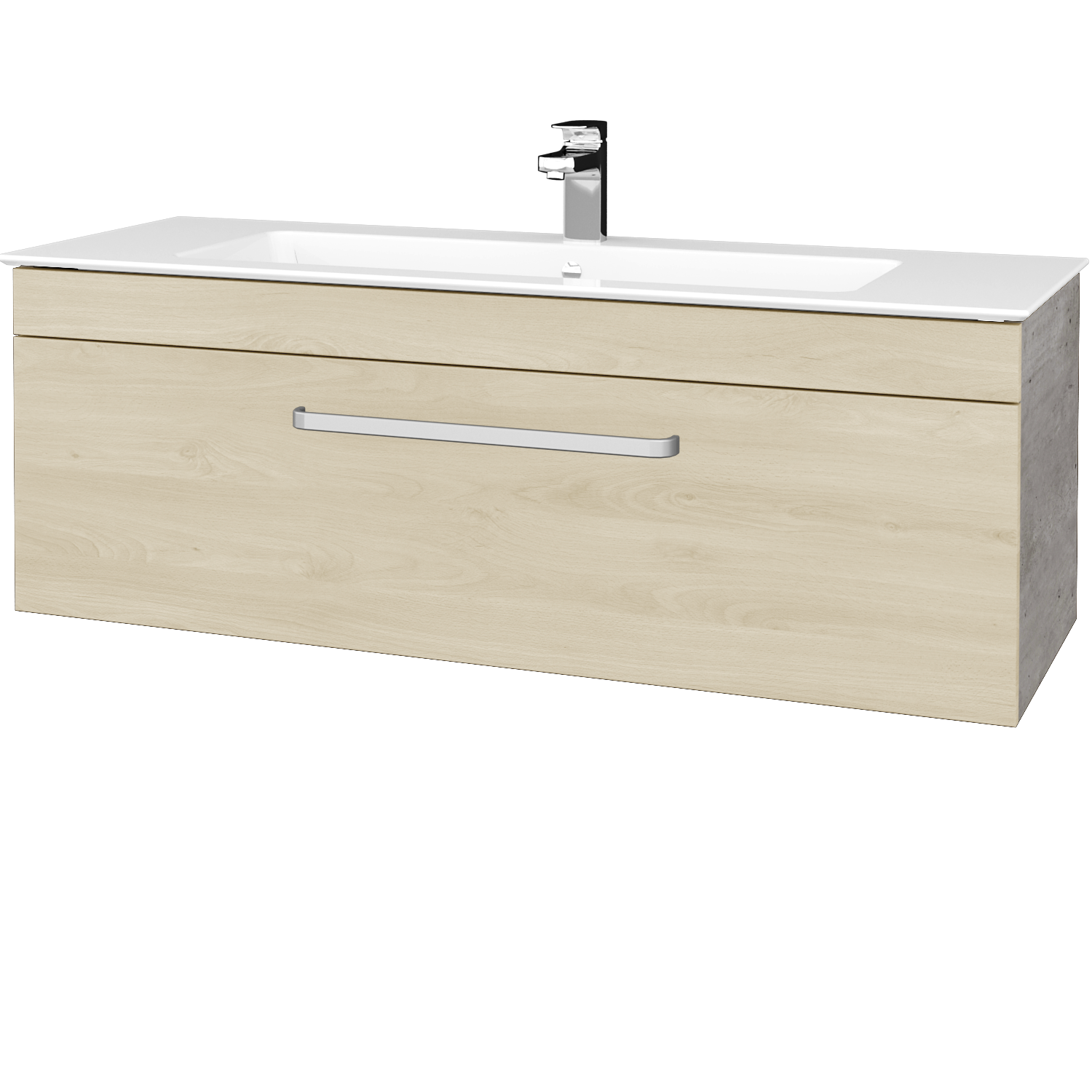 Umyvadlová skříňka (1200x420x445) s 1 zásuvkou a keramickým umyvadlem Pura 120 s 1 otvorem pro baterii Zobrazit více