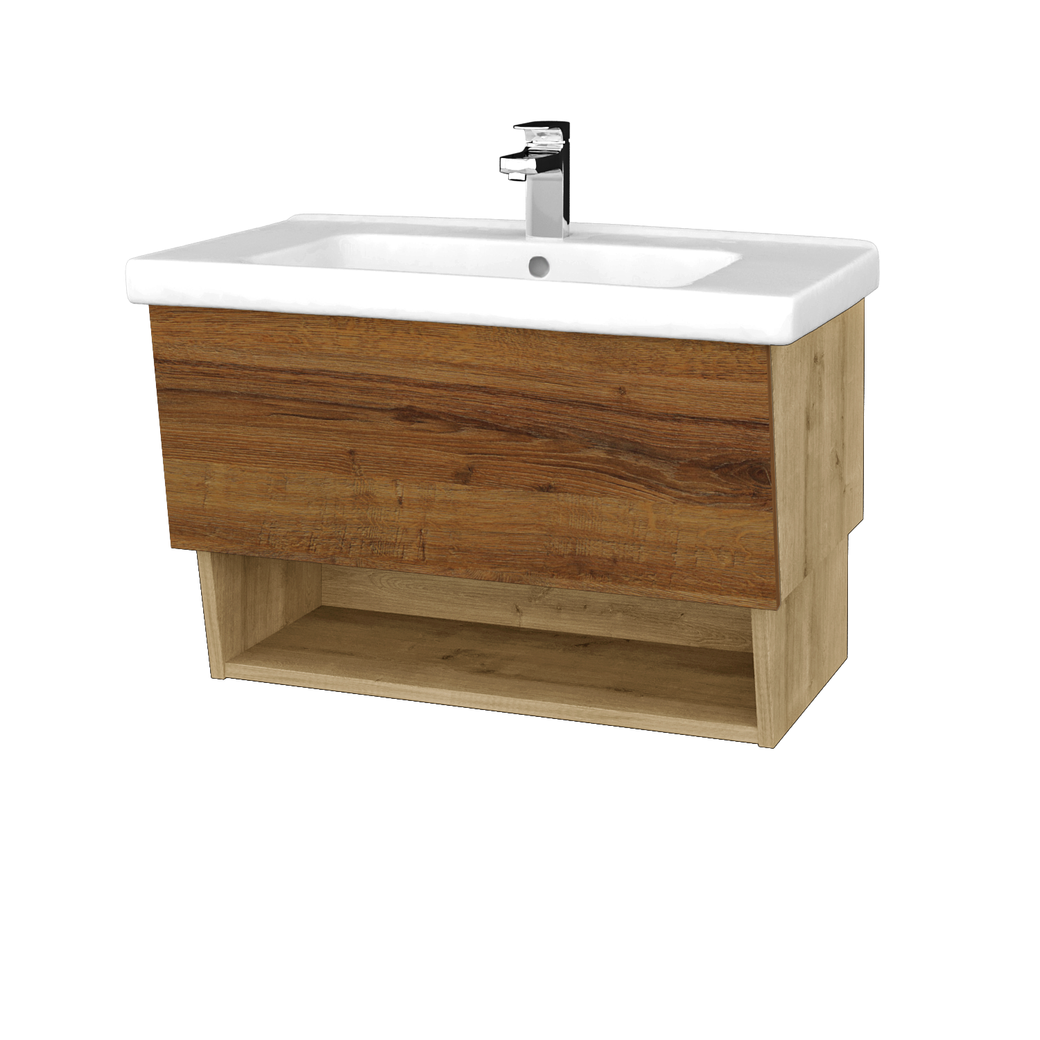 Závěsná umyvadlová skříňka 76x45,4x48 cm s 1 zásuvkou, nikou a keramickým umyvadlem Harmonia 80 Zobrazit více