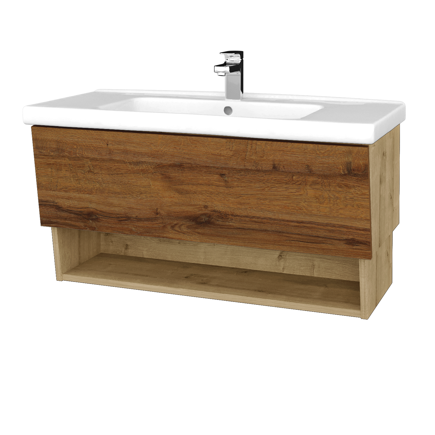 Závěsná umyvadlová skříňka 96x45,4x48 cm s 1 zásuvkou, nikou a keramickým umyvadlem Harmonia 100 Zobrazit více