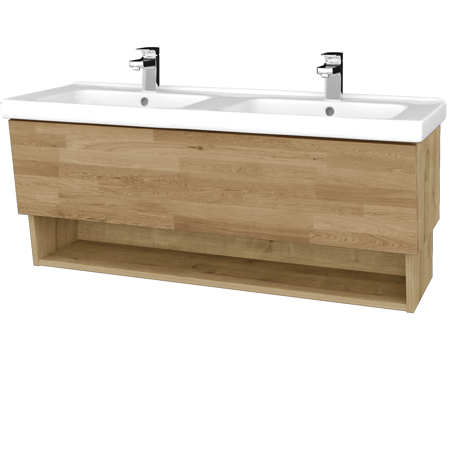 Závěsná umyvadlová skříňka 121x45,5x48 cm s 1 zásuvkou, nikou a dvojumyvadlem Harmmonia 125 Zobrazit více