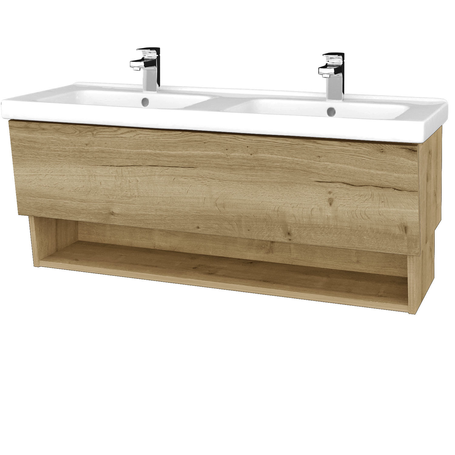 Závěsná umyvadlová skříňka 121x45,5x48 cm s 1 zásuvkou, nikou a dvojumyvadlem Harmmonia 125 Zobrazit více
