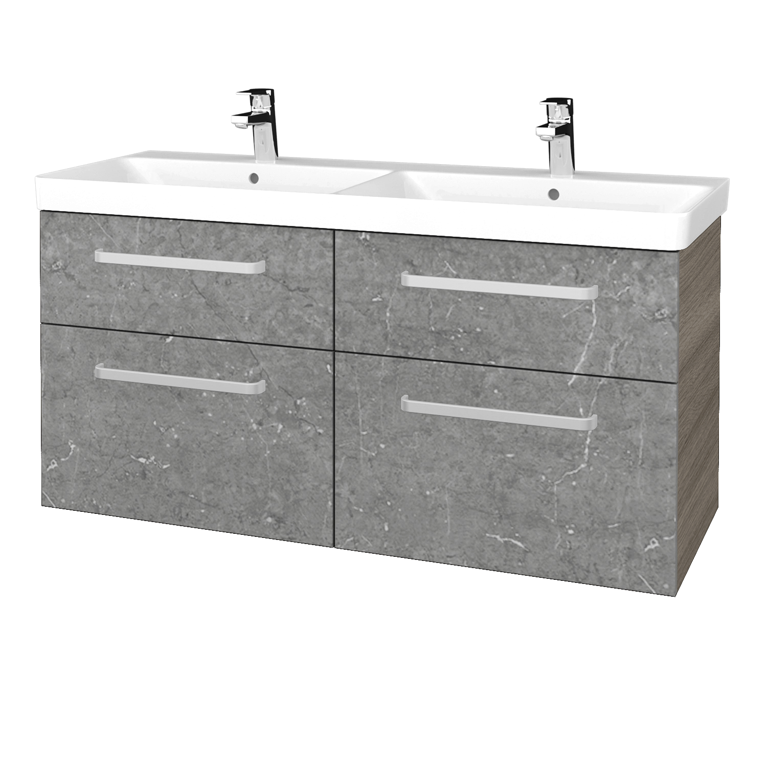 Závěsná umyvadlová skříňka (1160x560x445) se 4 zásuvkami a keramickým dvojumyvadlem Victory 120 Zobrazit více