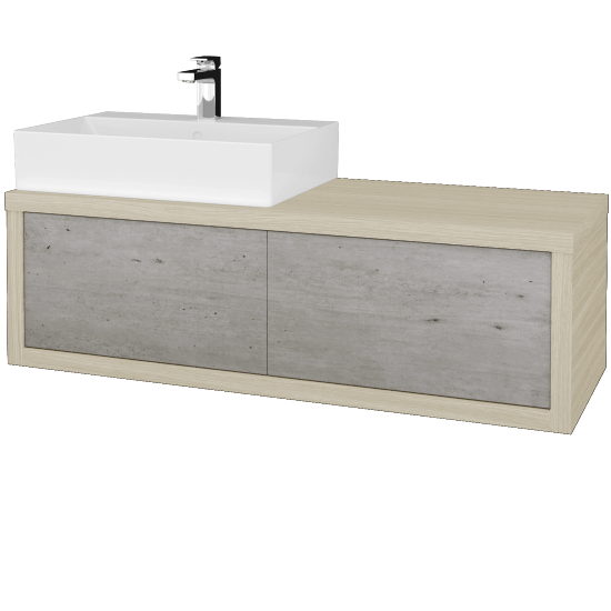 Závěsná umyvadlová skříňka (1200x370x500) se 2 zásuvkami vedle sebe a keramickým umyvadlem Kube Zobrazit více