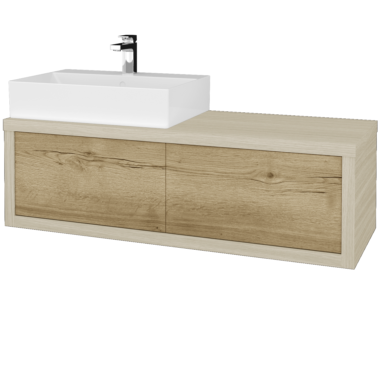 Závěsná umyvadlová skříňka (1200x370x500) se 2 zásuvkami vedle sebe a keramickým umyvadlem Kube Zobrazit více