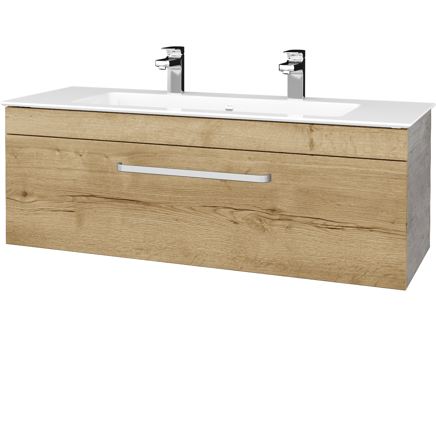 Umyvadlová skříňka (1200x420x445) s 1 zásuvkou a keramickým umyvadlem Pura 120 se 2 otvory pro baterii Zobrazit více