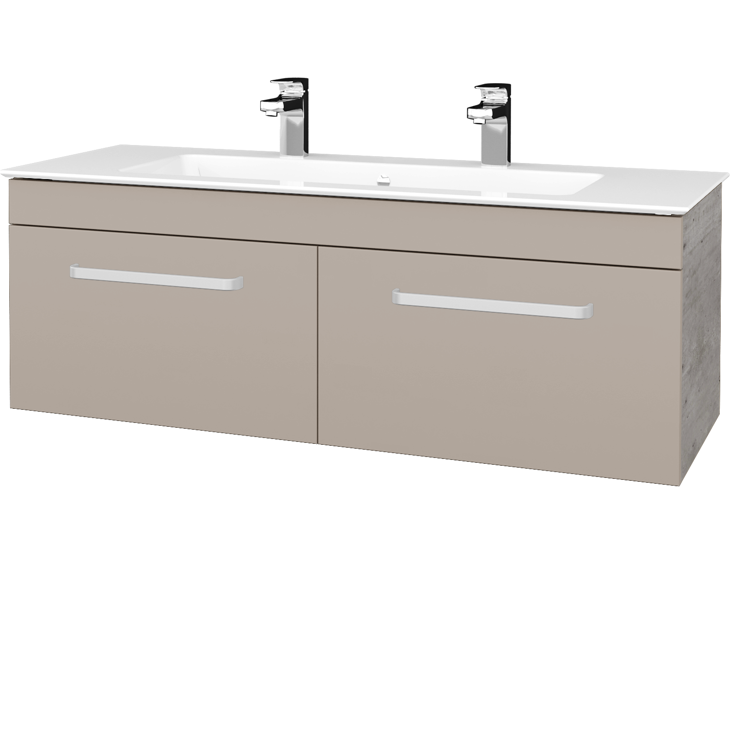 Umyvadlová skříňka (1200x420x445) se 2 zásuvkami a keramickým umyvadlem Pura 120 se 2 otvory pro baterii Zobrazit více