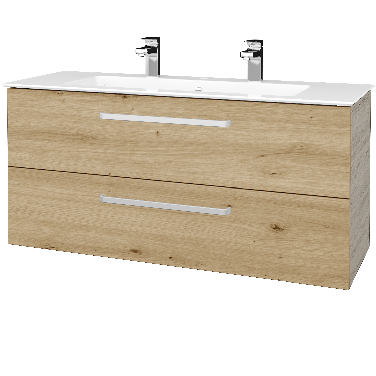 Umyvadlová skříňka (1200x560x445) se 2 zásuvkami a keramickým umyvadlem Pura 120 se 2 otvory pro baterii Zobrazit více