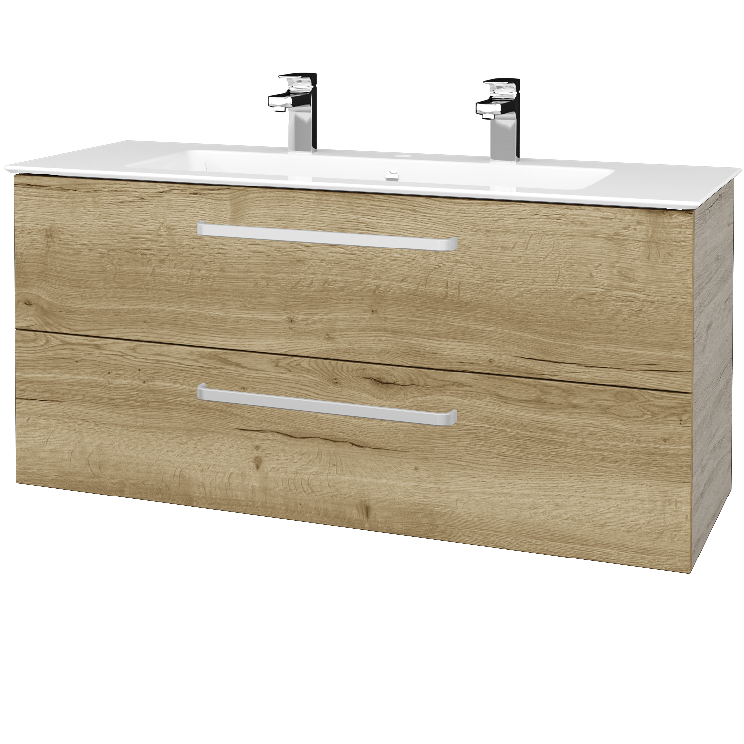 Umyvadlová skříňka (1200x560x445) se 2 zásuvkami a keramickým umyvadlem Pura 120 se 2 otvory pro baterii Zobrazit více