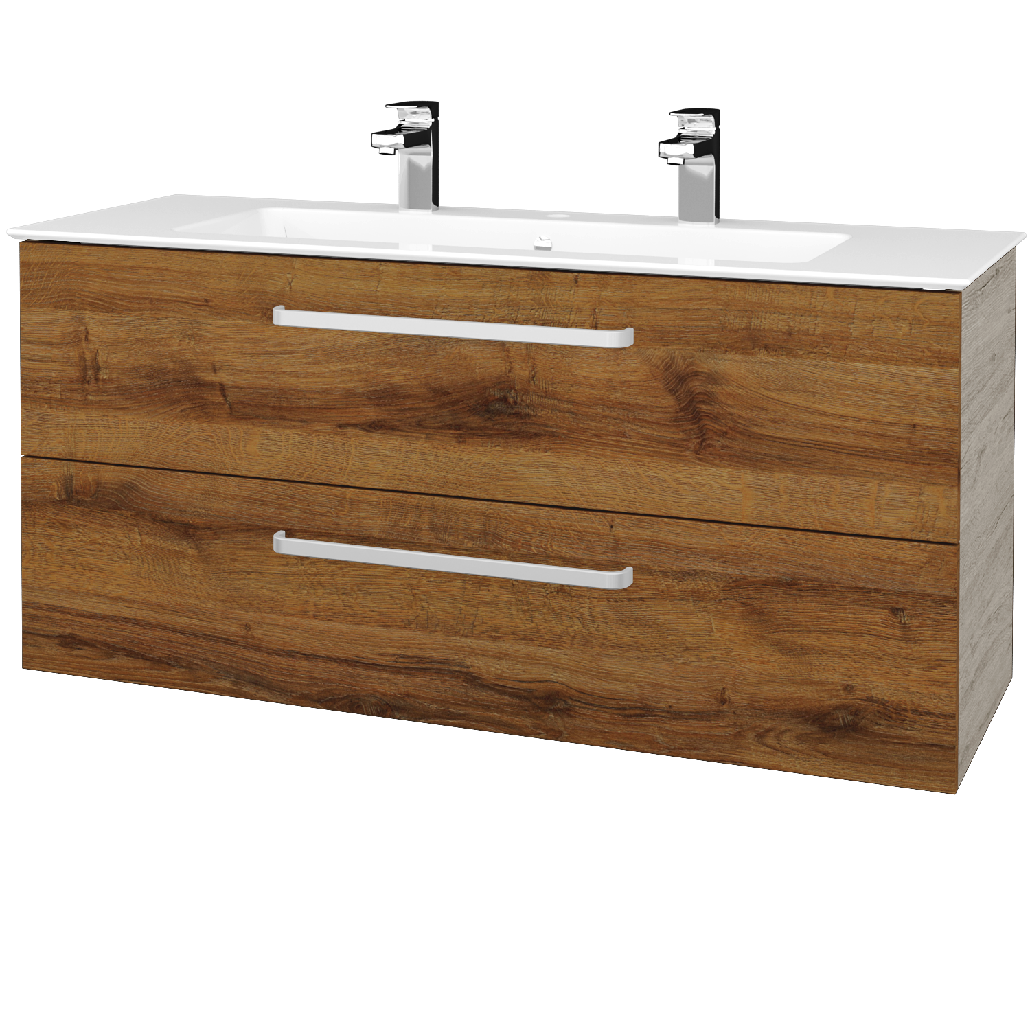 Umyvadlová skříňka (1200x560x445) se 2 zásuvkami a keramickým umyvadlem Pura 120 se 2 otvory pro baterii Zobrazit více