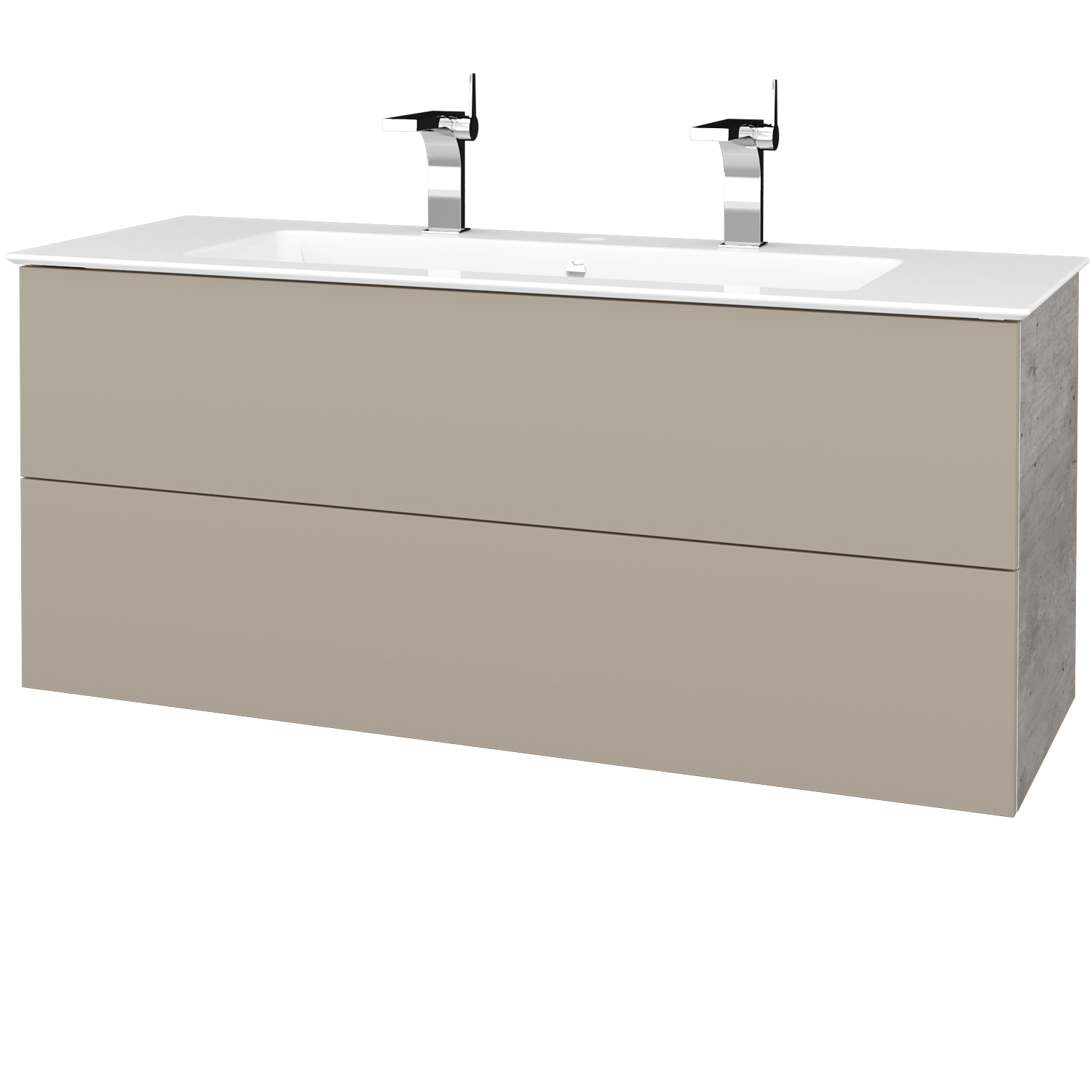 Závěsná umyvadlová skříňka (1210x420x450) se 2 zásuvkami a keramickým dvojumyvadlem Harmonia 125