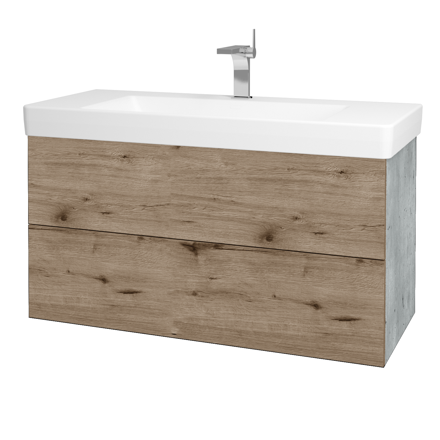 Umyvadlová skříňka (1400x318x500) se 2 zásuvkami a keramickým umyvadlem Glance 100