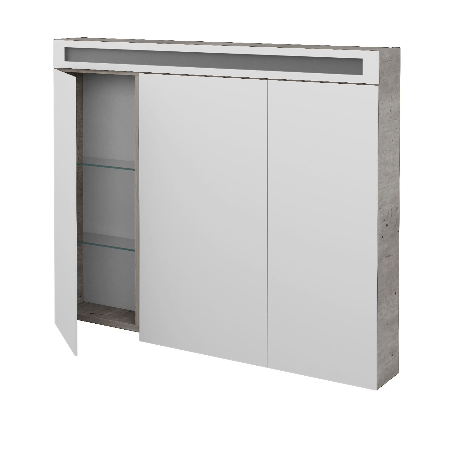 Integrované LED osvětlení je umístěno v horní části skříňky za lištou z pískovaného skla, která propouští světlo, aniž by narušovala celkový design skříňky. Světlo se ovládá nástěnným vypínačem, kterému musí odpovídat stavební připravenost v koupelně. Výkon LED osvětlení je 19,5 W a celá galerka splňuje krytí IP 44.