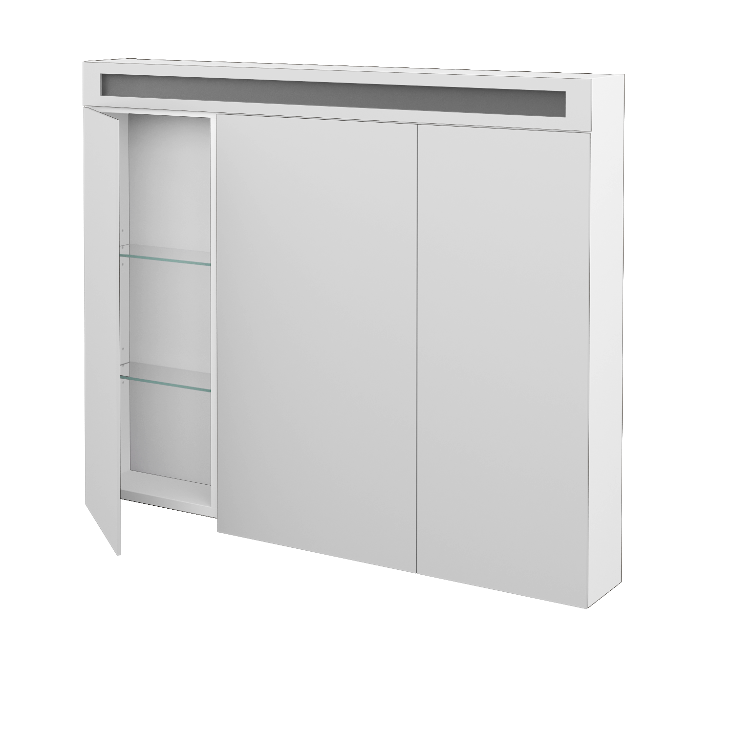 Integrované LED osvětlení je překryto mléčným pískovaným sklem a jeho výkon 19,5 W zajistí dostatečné osvětlení i v prostorných koupelnách. Galerka je navíc osvětlena i uvnitř a příjemně tak prosvětluje skleněné police. Světlo se pohodlně ovládá vypínačem ve spodní části galerky a uvnitř najdete i elektrickou zásuvku (230 W), díky které bude vysoušení vlasů či holení pohodlnější. Galerka splňuje krytí IP 44.