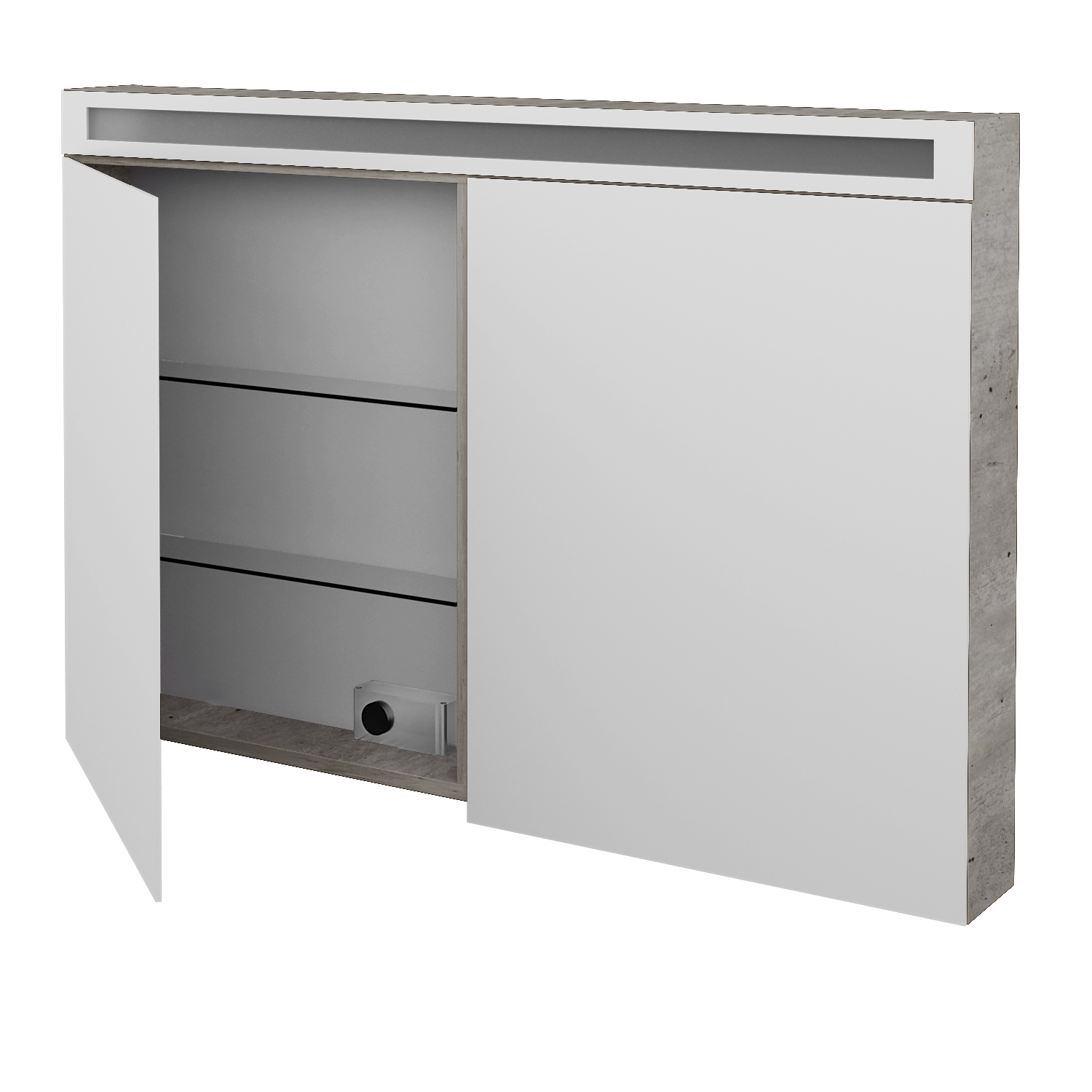 Integrované LED osvětlení je překryto mléčným pískovaným sklem a jeho výkon 24,8 W zajistí dostatečné osvětlení i v prostorných koupelnách. Galerka je navíc osvětlena i uvnitř a příjemně tak prosvětluje skleněné police. Světlo se pohodlně ovládá vypínačem ve spodní části galerky a uvnitř najdete i elektrickou zásuvku (230 W), díky které bude vysoušení vlasů či holení pohodlnější. Galerka splňuje krytí IP 44.