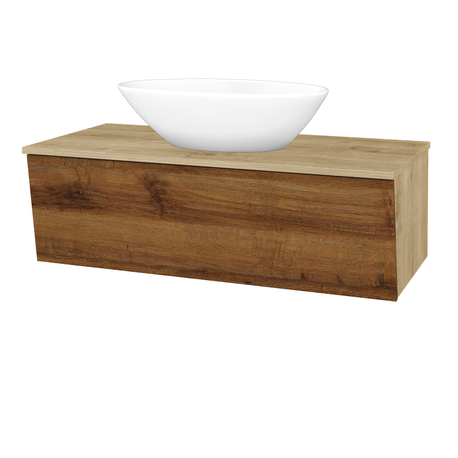 Závěsná umyvadlová skříňka (1200x370x500) s 1 zásuvkou, nikou a keramickým umyvadlem Kube