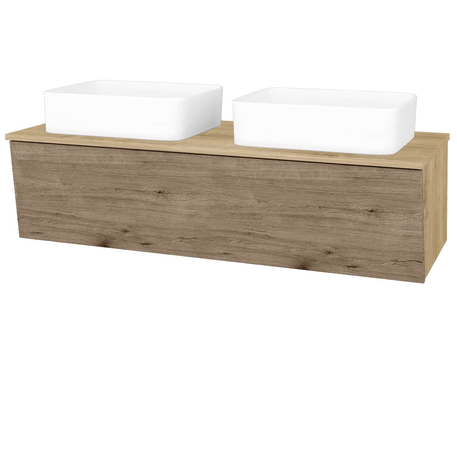 Závěsná umyvadlová skříňka 121,4x49,8x46 cm s 1 zásuvkou, nikou a 2 keramickými umyvadly Joy