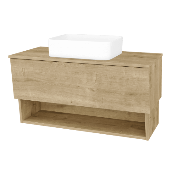 Závěsná umyvadlová skříňka 121x45,5x48 cm s 1 zásuvkou, nikou a dvojumyvadlem Harmmonia 125