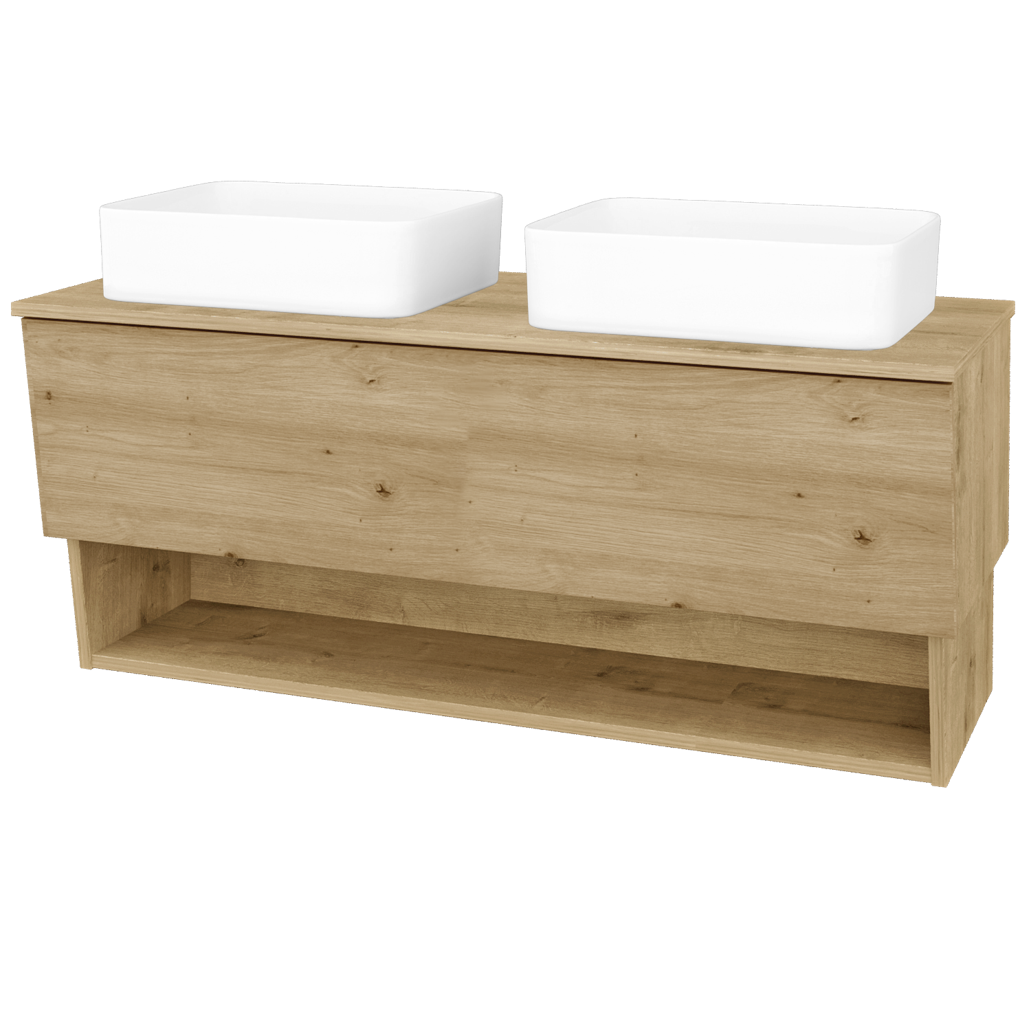 Závěsná umyvadlová skříňka 121,4x49,8x46 cm s 1 zásuvkou, nikou a 2 keramickými umyvadly Joy Zobrazit více