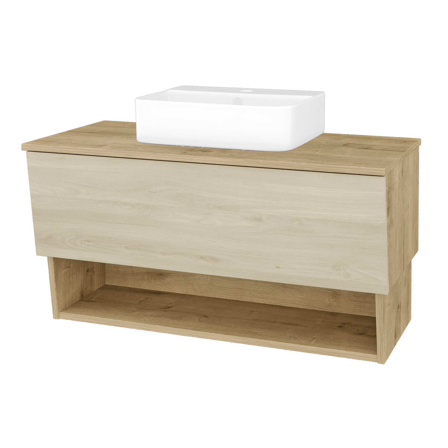 Závěsná umyvadlová skříňka (1200x370x500) s 1 zásuvkou, nikou a keramickým umyvadlem Joy 3