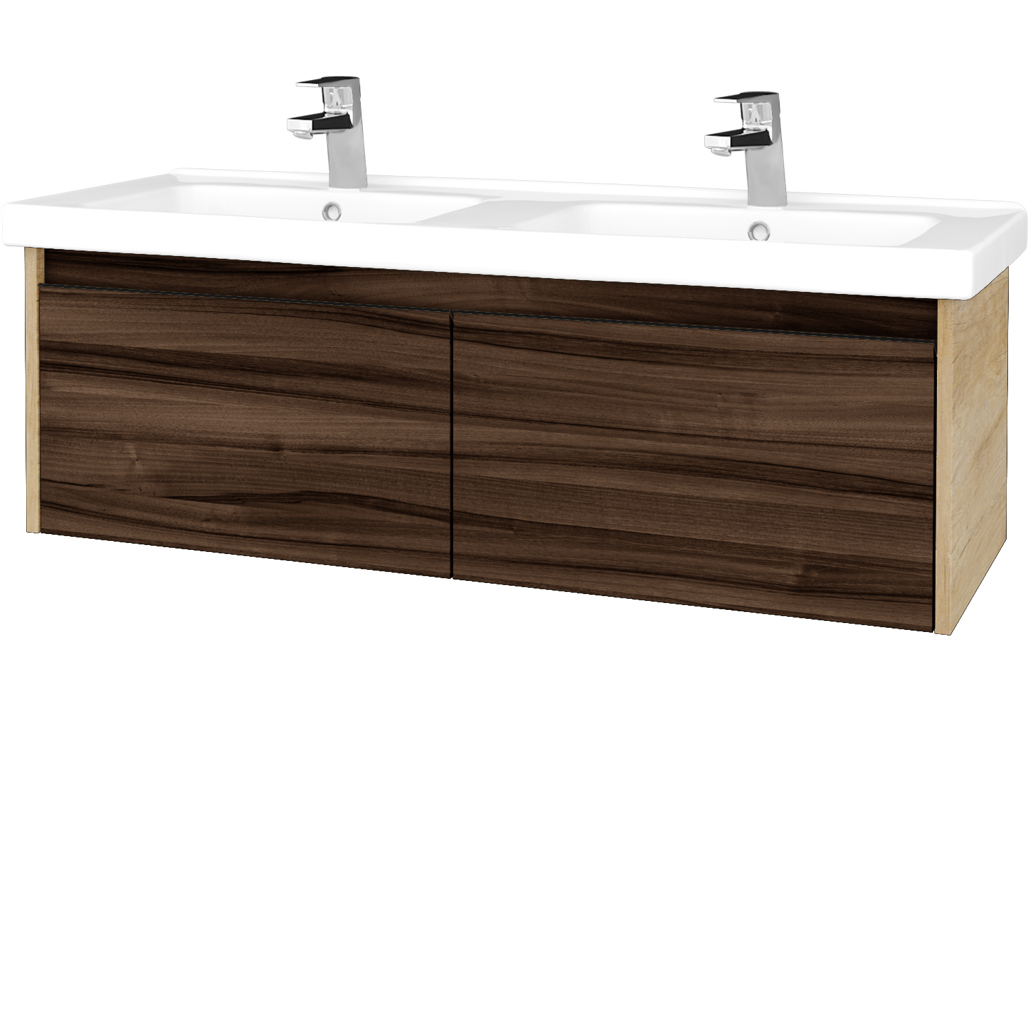 Umyvadlová skříňka (1210x390x445) se 2 zásuvkami a keramickým dvojumyvadlem Harmonia 125 Zobrazit více