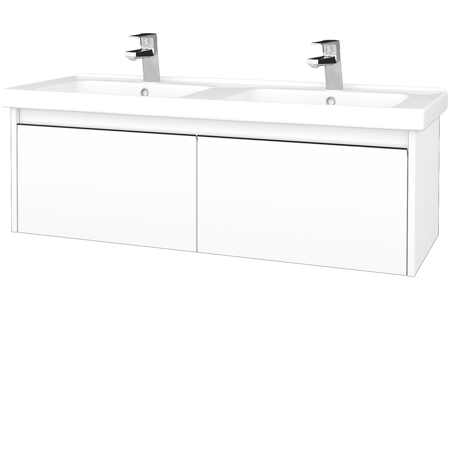 Umyvadlová skříňka (1210x390x445) se 2 zásuvkami a keramickým dvojumyvadlem Harmonia 125 Zobrazit více