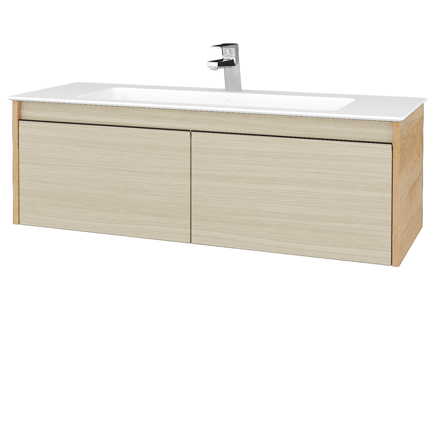 Závěsná umyvadlová skříňka (1200x390x445) se 2 zásuvkami a keramickým umyvadlem Pura 120 Zobrazit více