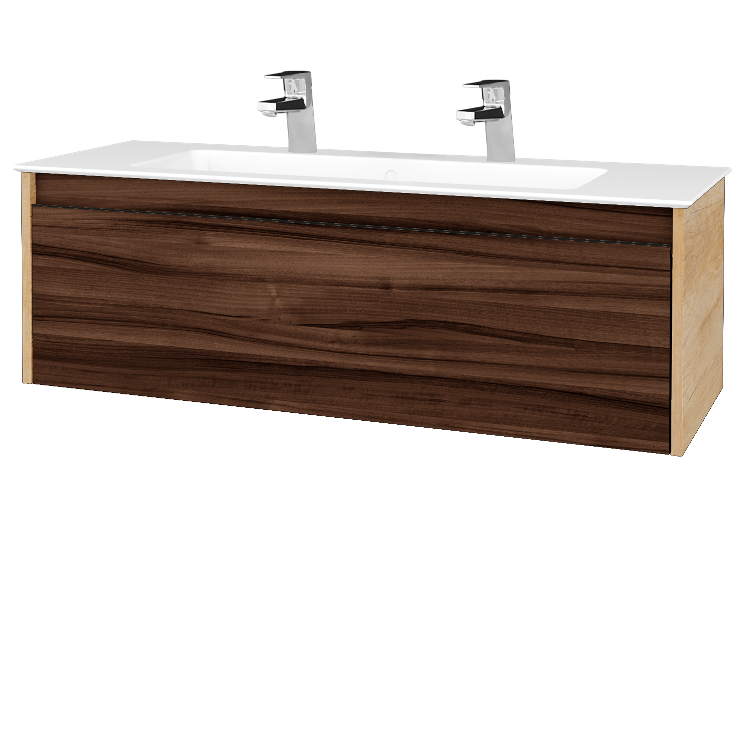 Závěsná umyvadlová skříňka (1210x420x450) se 2 zásuvkami a keramickým dvojumyvadlem Harmonia 125