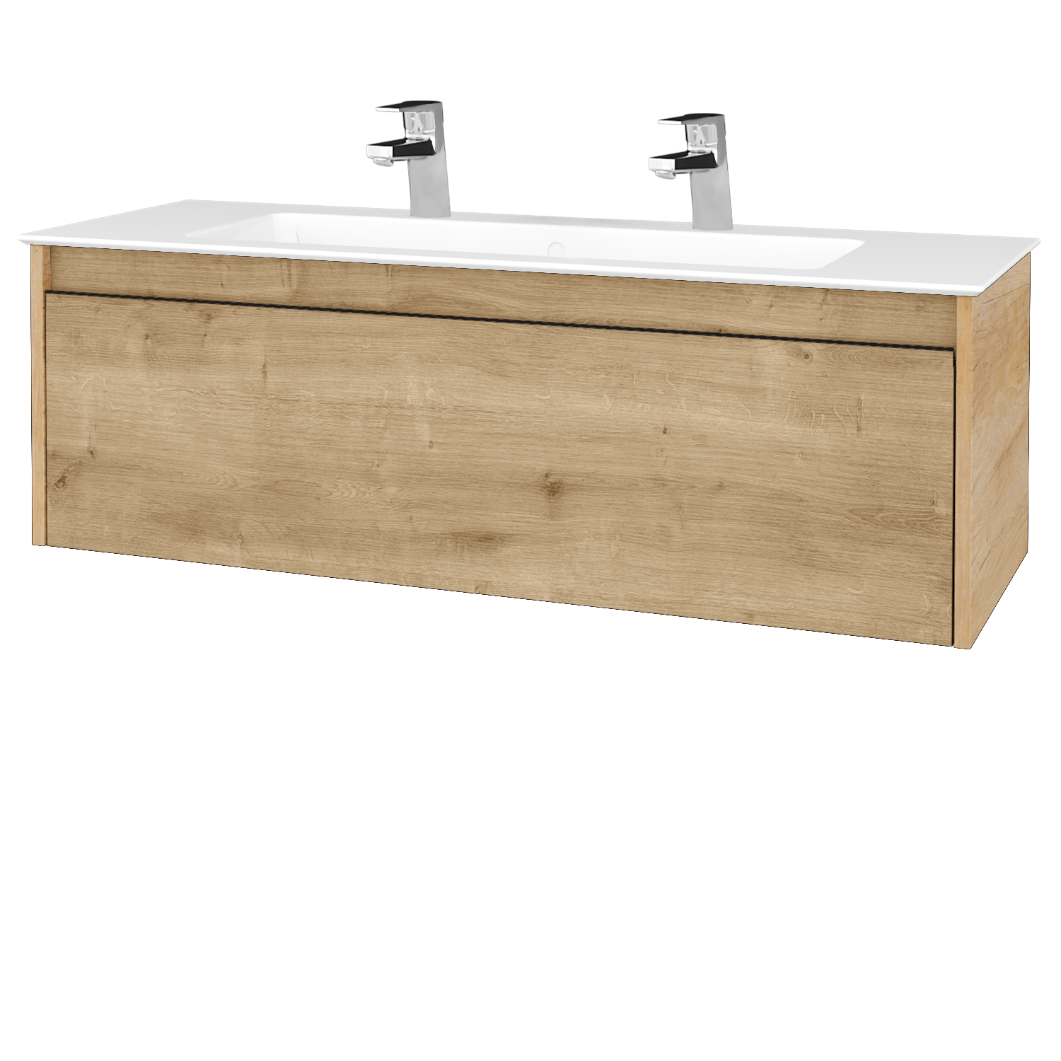 Závěsná umyvadlová skříňka (1200x390x450) s 1 zásuvkou a keramickým umyvadlem Pura 120 se 2 otvory pro baterii Zobrazit více