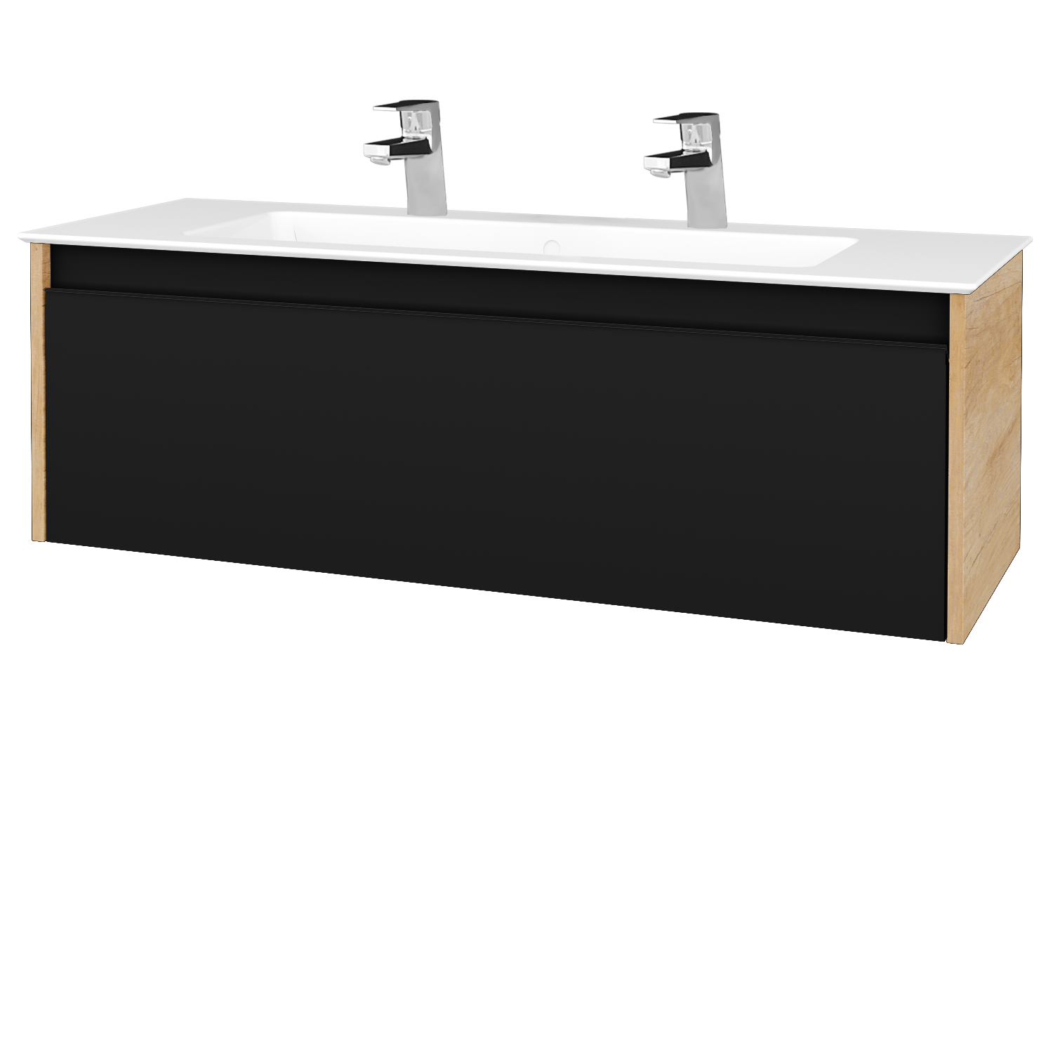 Závěsná umyvadlová skříňka (1200x390x450) s 1 zásuvkou a keramickým umyvadlem Pura 120 se 2 otvory pro baterii Zobrazit více