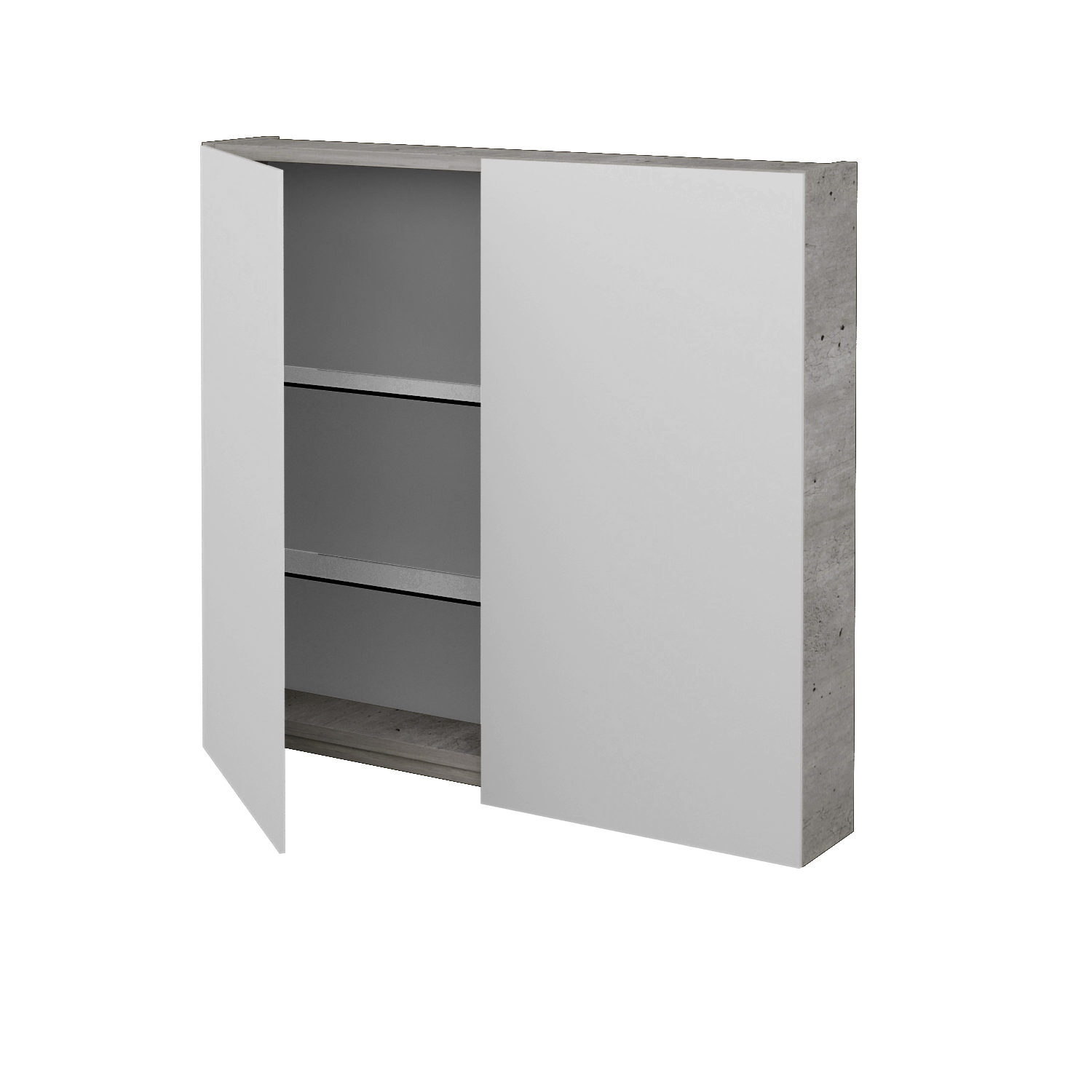 Dvoudveřová zrcadlová skříňka (800x739x138) s elektrickou zásuvkou a 2 skleněnými policemi Zobrazit více