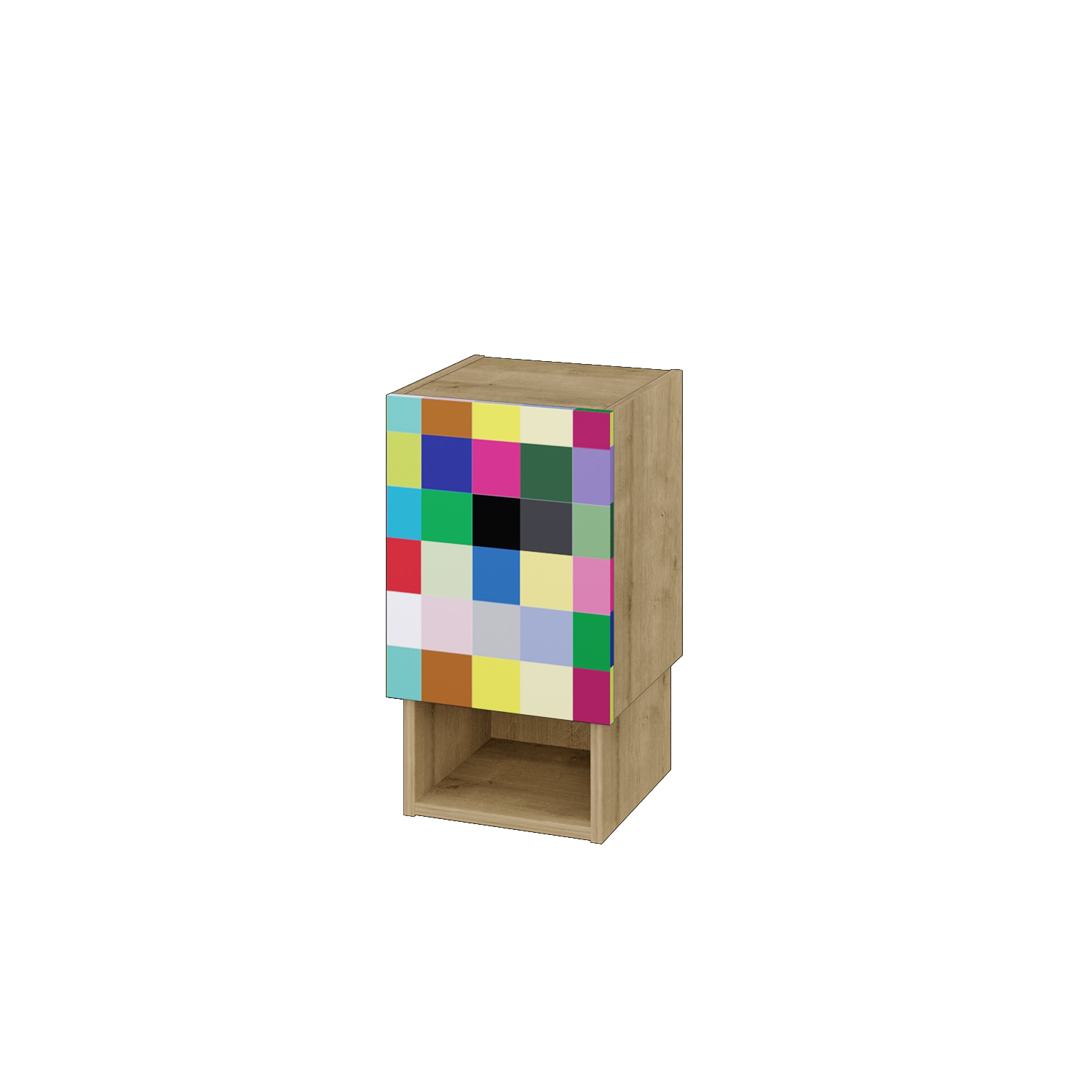 Ve spodní části skříňky je otevřená nika, do které snadno uložíte každodenní drobnosti. Tím, že budou rychle dostupné, tak je možná přestanete zapomínat používat. Tuto skříňku si můžete vybrat z mnoha barev ze vzorníku RAL, dřevodekorů a dalších variat dekorů, laků. Tím ovšem nekončíme! V nabídce je i kombinace 3 různých barev/dekorů. Pokud jste se rozhodli pro masivní dřevo, tak i tuto variantu vám rádi vyrobíme.