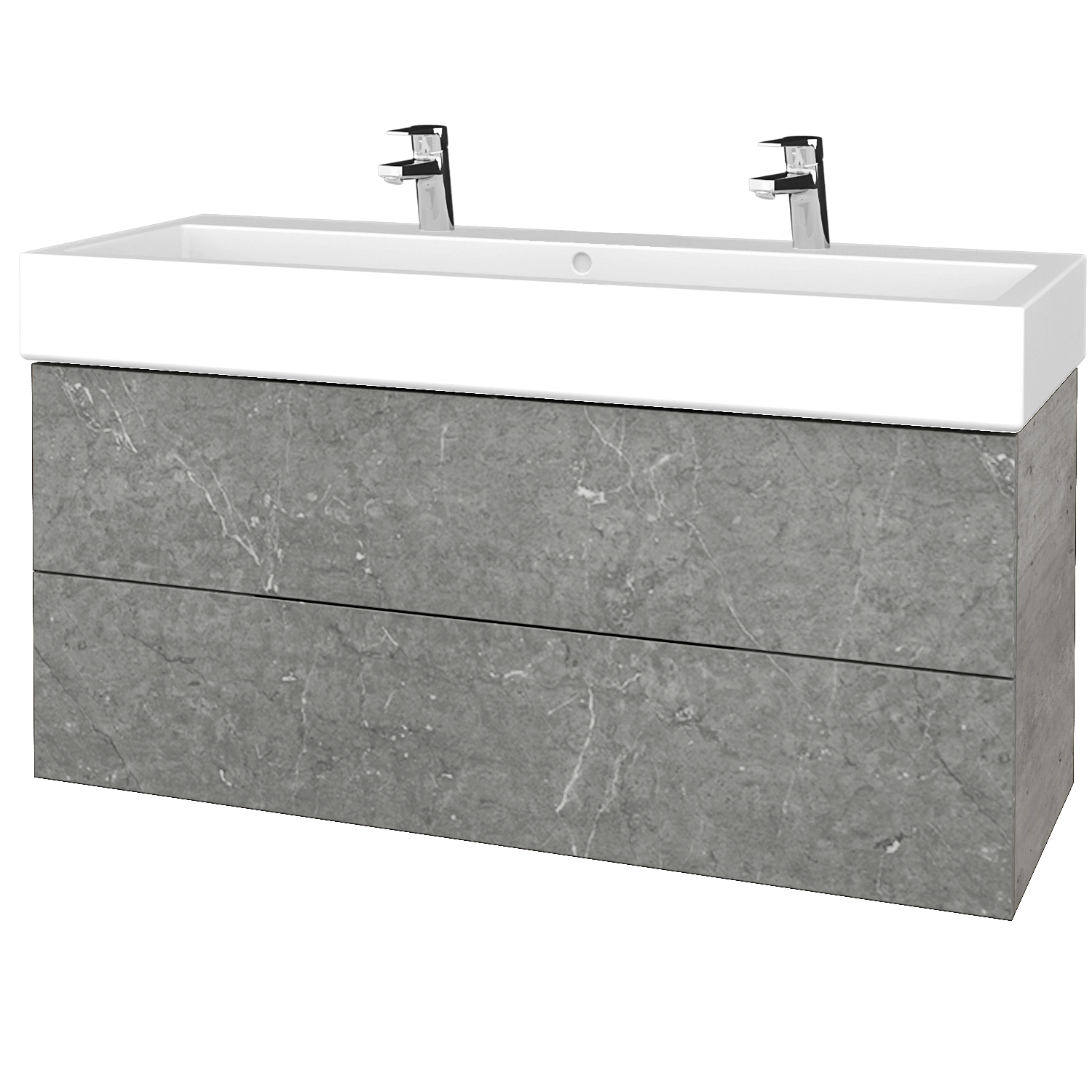 Umyvadlová skříňka (1210x390x445) se 2 zásuvkami a keramickým dvojumyvadlem Harmonia 125
