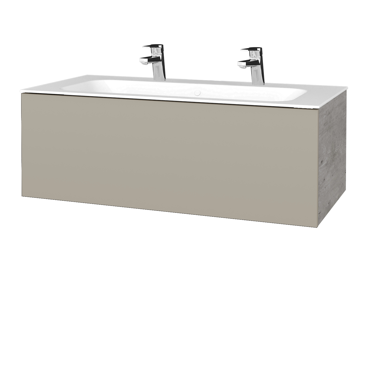 Umyvadlová skříňka (1200x318x500) se 2 velkými zásuvkami a 2 keramickými umyvadly Kube