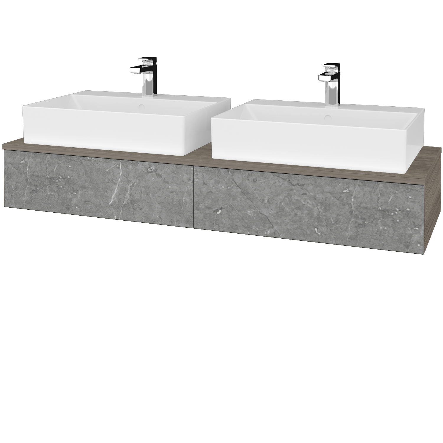 Umyvadlová skříňka (1400x218x500) se 2 zásuvkami a 2 keramickými umyvadly Kube Zobrazit více