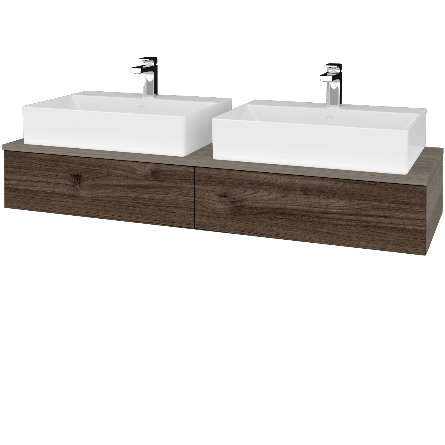 Umyvadlová skříňka (1400x218x500) se 2 zásuvkami a 2 keramickými umyvadly Kube Zobrazit více