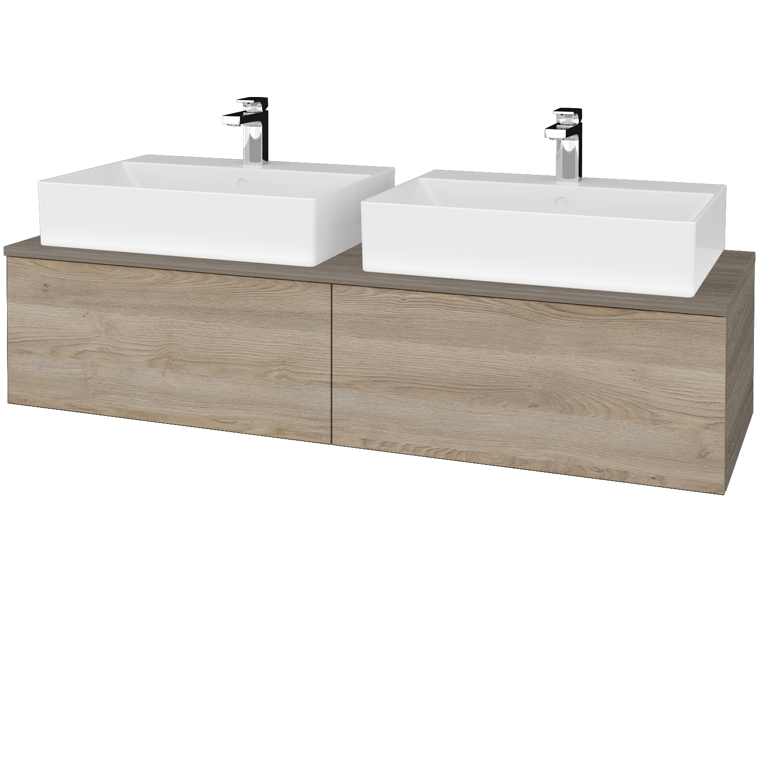 Umyvadlová skříňka (1400x318x500) se 2 velkými zásuvkami a 2 keramickými umyvadly Kube Zobrazit více