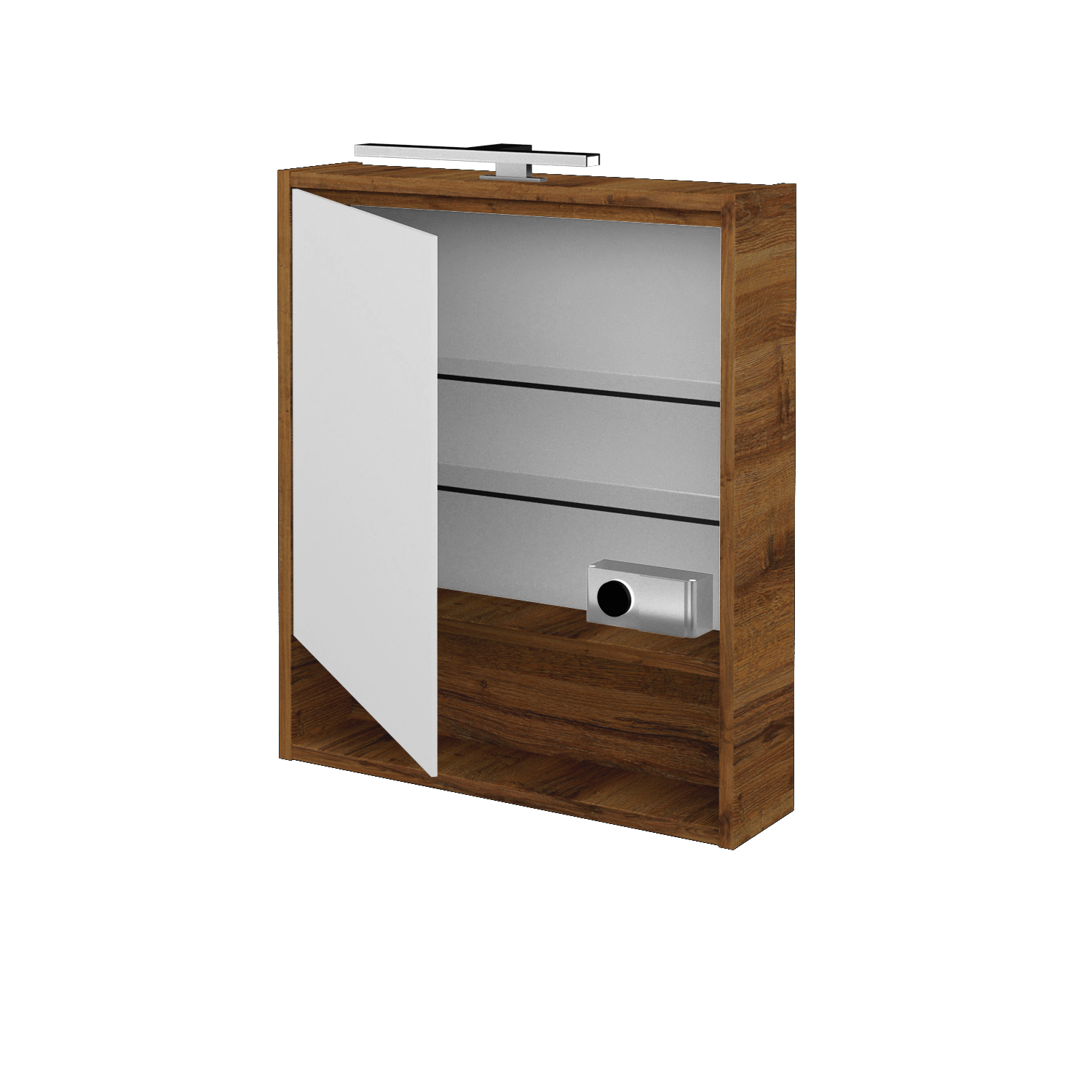 Jednodveřová galerka (600x700x150) s LED osvětlením, vypínačem zásuvkou a 2 skleněnými policemi Zobrazit více