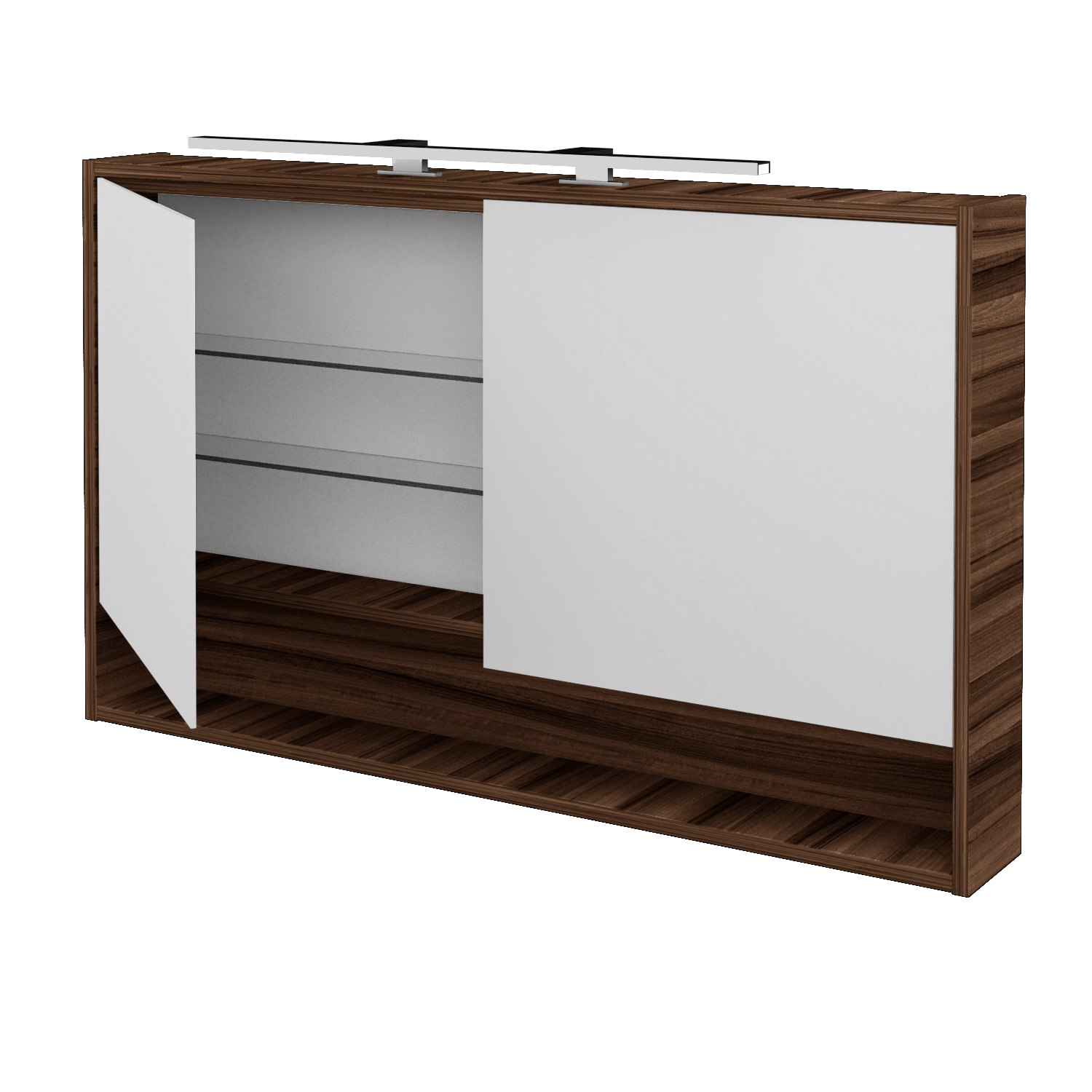 Prostorná dvoudvéřová galerka FOCUS GA2OE 120 patří do velkých koupelen v početných domácnostech. Za oboustrannými zrcadlovými dvířky je na 2 skleněných policích mnoho prostoru pro každého člena rodiny. Do galerky můžete uložit nejen kosmetiku, ale i léky a domácí lékárničku. Dvířka, která tvoří oboustranné zrcadlo, jsou opatřena speciální lištou, která patří mezi naše patenty. Kompletní dvířka jsou usazena na kvalitním německém kování Hettich, na které od nás získáte doživotní záruku. Na celou skříňku pak platí prodloužená záruka v délce 5 let. Otevřená nika ukazuje na spojení designu i funkčnosti a to i v takto velkém kusu koupelnového nábytku. Do otevřené police můžete uložit každodenní drobnosti, šperky nebo brýle ale i drobné dekorace.