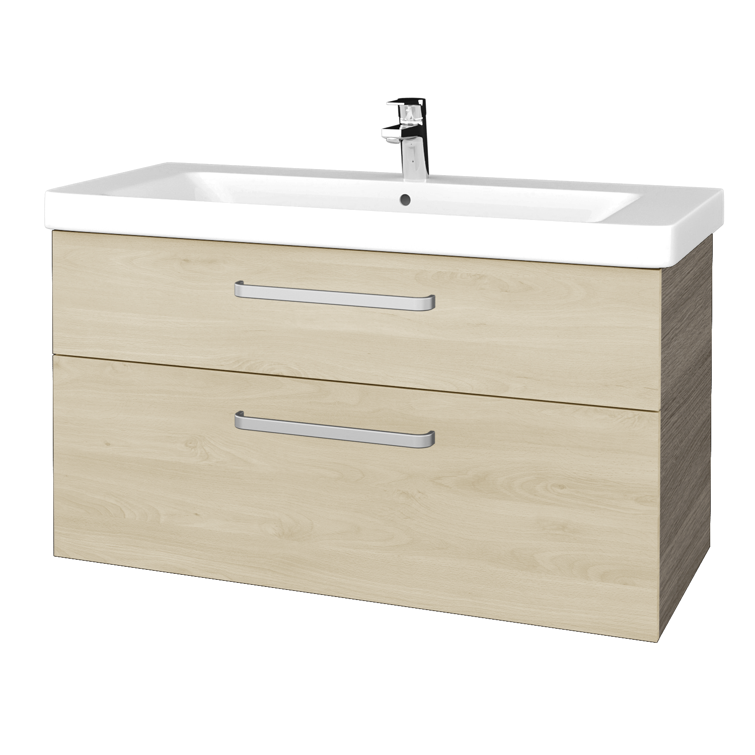 Závěsná umyvadlová skříňka (1010x560x438) se 2 zásuvkami a keramickým umyvadlem Victory 105 Zobrazit více