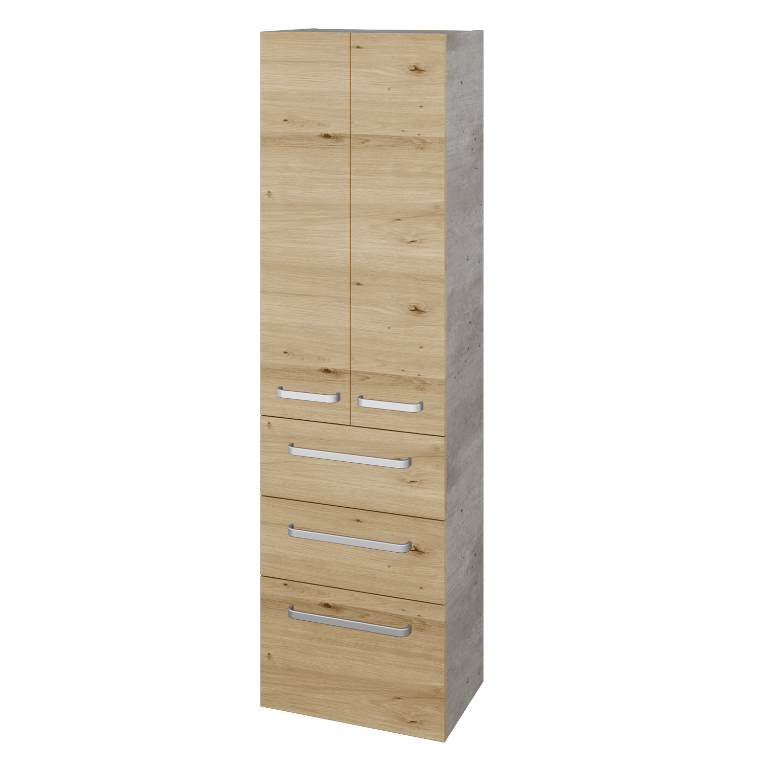 Do prostorné vysoké skříně DOS SVD2Z3 50 uložíte opravdu vše. Skříň je rozdělena na horní část, která má za dvířky 2 výškově polohovatelné skleněné police, a na spodní část, kterou tvoří 3 různě vysoké zásuvky. Máte mnoho možností, jak uspořádat tento úložný prostor. 50 cm široká skříňka tak v koupelně pomůže s udržováním pořádku snadno a velice rychle. Vyberte si z několika typů úchytek, které pomohou doladit vaši koupelnu.