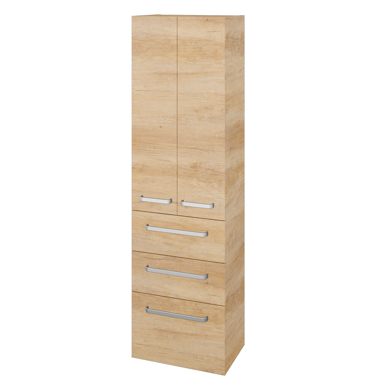Do prostorné vysoké skříně DOS SVD2Z3 50 uložíte opravdu vše. Skříň je rozdělena na horní část, která má za dvířky 2 výškově polohovatelné skleněné police, a na spodní část, kterou tvoří 3 různě vysoké zásuvky. Máte mnoho možností, jak uspořádat tento úložný prostor. 50 cm široká skříňka tak v koupelně pomůže s udržováním pořádku snadno a velice rychle. Vyberte si z několika typů úchytek, které pomohou doladit vaši koupelnu.