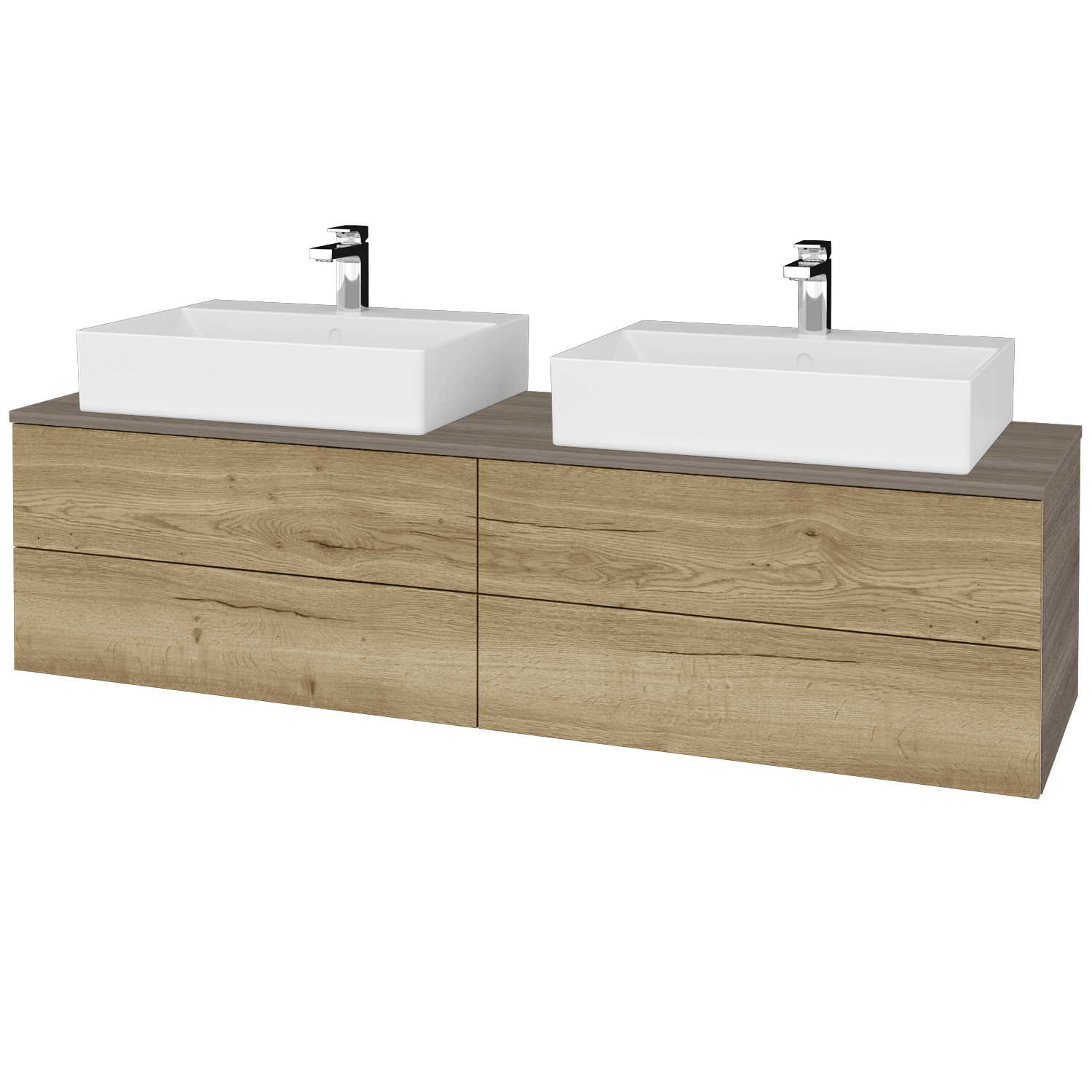 Umyvadlová skříňka (1600x418x500) se 4 objemnými zásuvkami a 2 keramickými umyvadly Kube Zobrazit více