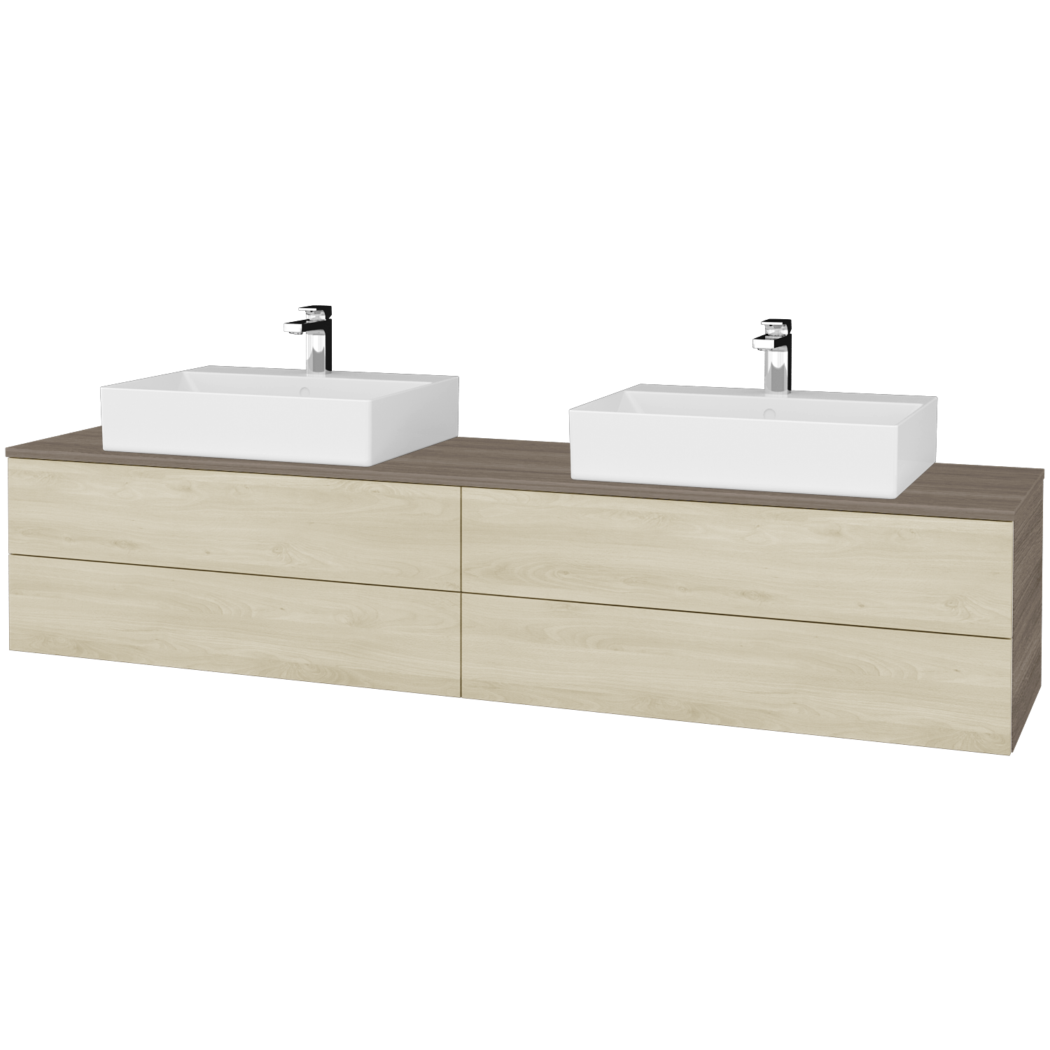 Umyvadlová skříňka (2000x418x500) se 4 objemnými zásuvkami a 2 keramickými umyvadly Kube Zobrazit více