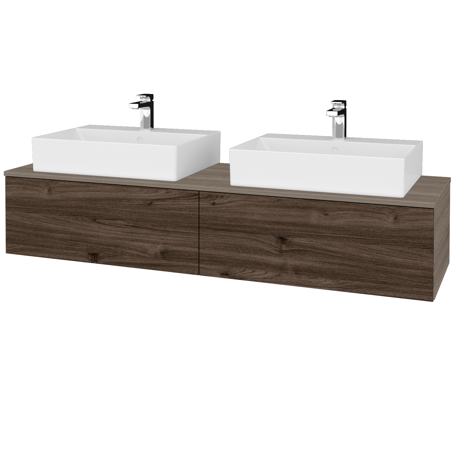 Umyvadlová skříňka (1600x318x500) se 2 velkými zásuvkami a 2 keramickými umyvadly Kube Zobrazit více