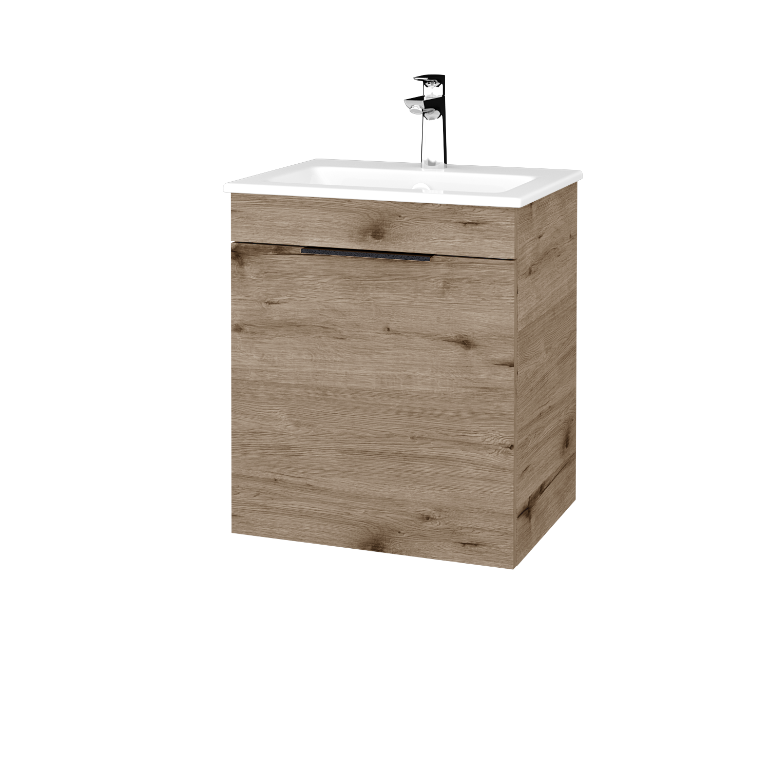 Závěsná jednodveřová umyvadlová skříňka (480x560x390) s elegantním keramickým umyvadlem Altero 50 Zobrazit více