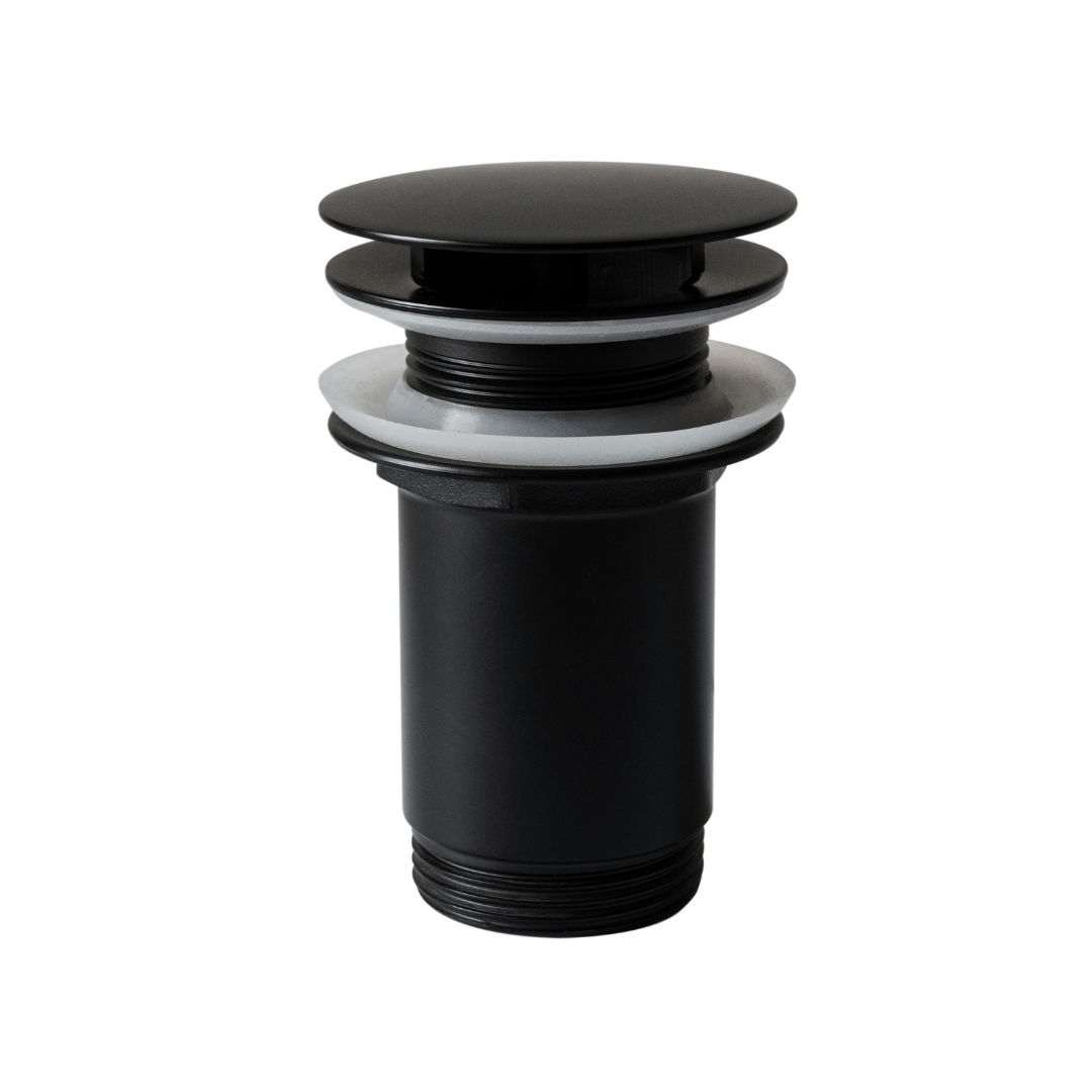Kovová průtoková výpusť s neuzavíratelnou zátkou pro umyvadla bez přepadu - černá mat Zobrazit více