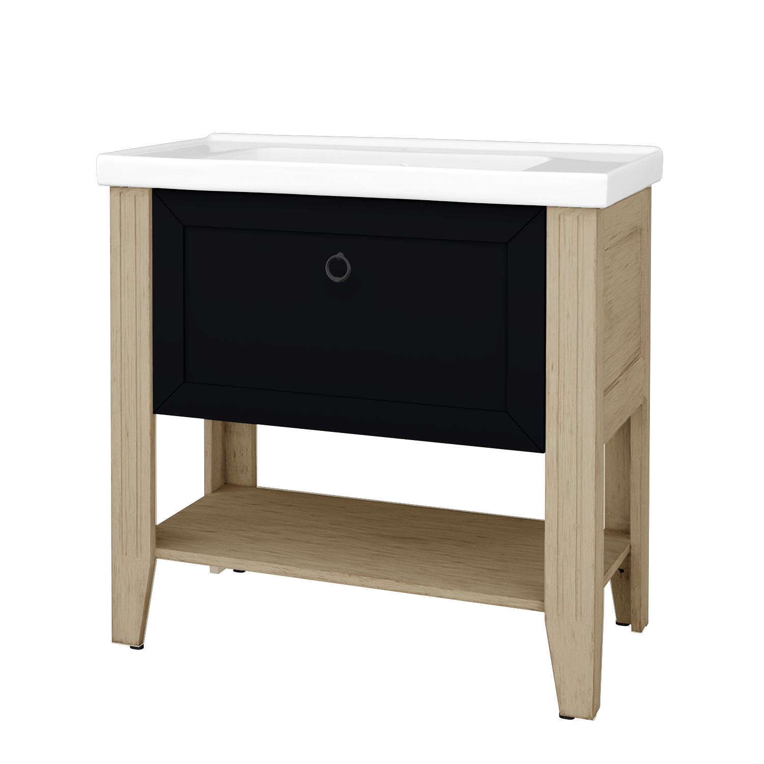 Umyvadlová skříňka (860x820x450) s 1 zásuvkou, dřevěnou policí a keramickým umyvadlem Grace 90 Zobrazit více