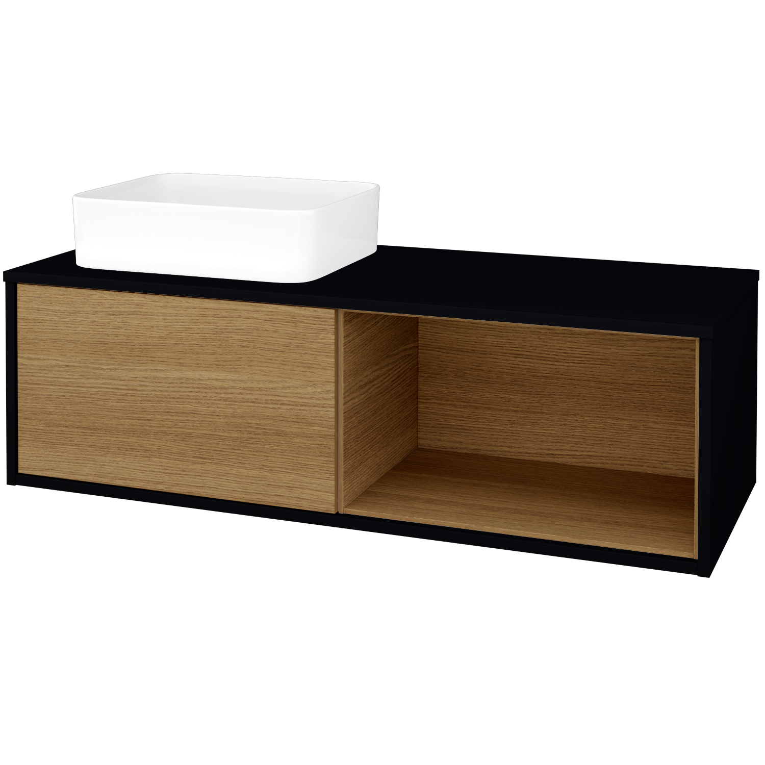 Umyvadlová skříňka (1200x370x500) s 1 zásuvkou, nikou vpravo s LED osvětlením uvnitř a keramickým umyvadlem Joy Zobrazit více